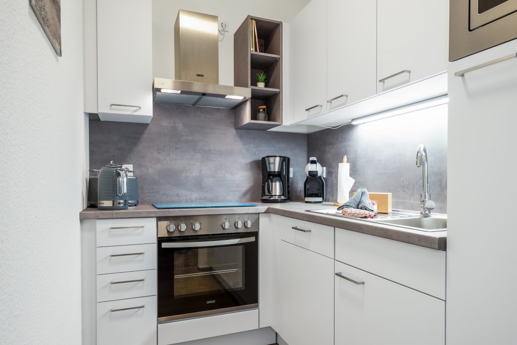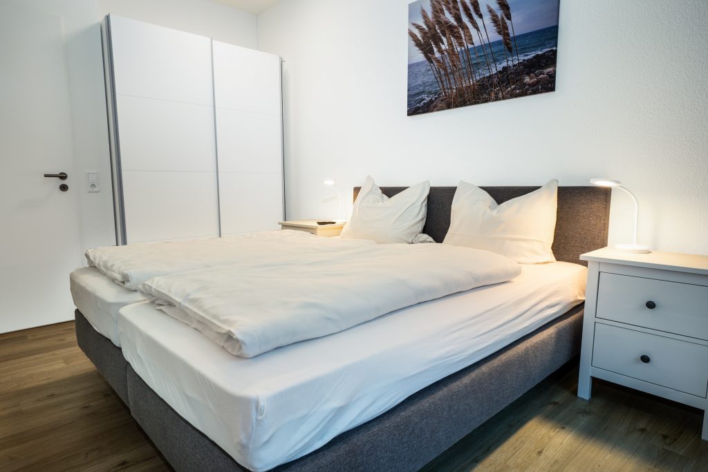Unsere moderne Einbauküche bietet alles was man braucht, Cerankochfeld Spülmaschine , Backofen, Kühlschrank mit Gefrierfach, Kaffeemaschine, Toaster, Wasserkocher, Dolce Gusto, Kontaktgrill und Kindergeschirr.Das große Schlafzimmer bietet direkten Zugang zum Balkon. Ein Boxspringbett mit 180x200m und einer Tonnentaschenfederkernmatratze aus dem Hause Musterring bietet Ihnen einen erholsamen Schlaf. Auch hier befindet sich ein Smart TV mit allen gängigen Streamingdiensten und Sky Kanälen.