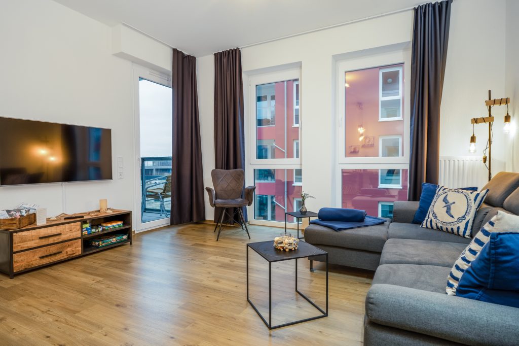 Unsere moderne 3 Zimmer Wohnung bietet Platz für bis zu 5 Personen. Die Größe beträgt 56m² und ermöglicht Ihnen einen traumhaften Blick auf die Ostsee.
